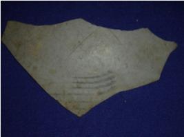 | Description / विवरण | Potsherd of a painted grey ware pottery having painted line designs on both sides. |