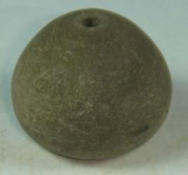 | Description / विवरण | Terracotta perforated bead, betel nut in shape, the surface is smooth, slight depression at the base, some incised lines over the body. |