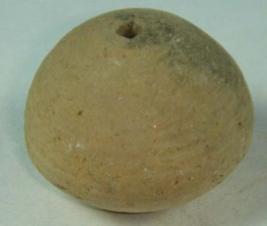| Description / विवरण | Perforated terracotta bead, betel nut in shape, the surface smooth, slight depression at the base. |