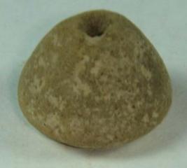 | Description / विवरण | Perforated terracotta bead, betel nut in shape, surface is rough, clay incrustation all over. |