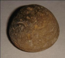 | Description / विवरण | Ill fired, terracotta bead, betel nut shape with circular, slightly flat base. A transverse perforation is at the centre to put it in a string, clay incrustation is seen on the body. |