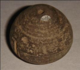 | Description / विवरण | Terracotta bead, betel nut shape with broad circular base on which a depression is seen. A transverse perforation is at the centre to put it in a string. Close striation marks are prominent on the body. |