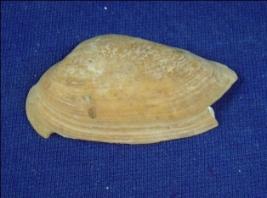 | Description / विवरण | Piece of light brown coloured scallop. Lower portion and one side are broken. |