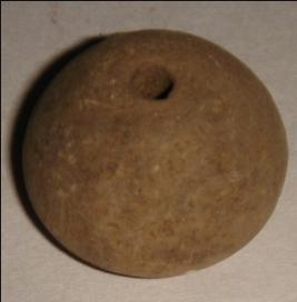 | Description / विवरण | Terracotta bead, betel nut shape with broad circular base on which a depression is seen. A transverse perforation is at the centre to put it in a string. Close striation marks are prominent on the body. |
