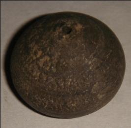 | Description / विवरण | Terracotta bead, betel nut shape with broad circular base. A transverse perforation is at the centre to put it in a string. Close striation marks are prominent on the base. |