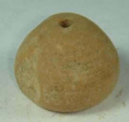 | Description / विवरण | Perforated terracotta bead, betel nut shaped with broken body and shallow depression at base. |