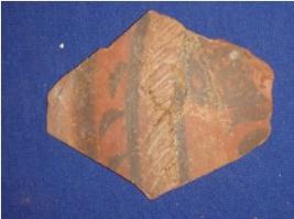 | Description / विवरण | Potsherd of Kushana Period pottery, painted with black colour and designed with applique work on outer side. The inner side is plain and without any decoration. |