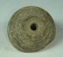 | Description / विवरण | Perforated terracotta bead, pot like shape with shallow depression at top and broken body with striation marks. |