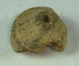| Description / विवरण | Perforated terracotta bead, betel nut in shape, broken body with striation marks. |