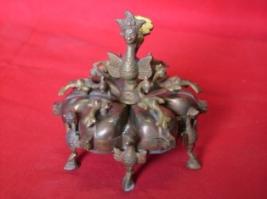 | Description / विवरण | Toilet box with the six compartments. The handle is in the shape of a bird but with a human face. Its body is engraved. Over every compartment a peacock is depicted. |