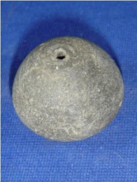 | Description / विवरण | Terracotta bead with transverse perforation, probably join with a necklace with the help of a thread and betel nut shape. |