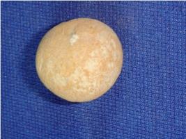 | Description / विवरण | Small terracotta sling ball, ill fired, round in shape, surface is rough. |