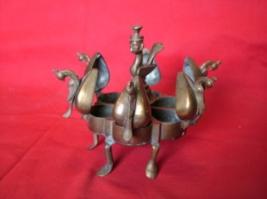 | Description / विवरण | Toilet box used by Mahratta ladies. It has six divisions. Handle is in the shape of a bird with the face of a human. Each compartment has a peacock over it. |