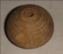 | Description / विवरण | Perforated terracotta bead, betel nut in shape. The surface has close striation marks all over and base has a circular deep depression. |