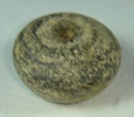 | Description / विवरण | Perforated terracotta body biconvex in shape with flat top and base, striation marks over the body. |
