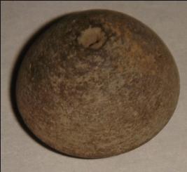 | Description / विवरण | Perforated terracotta bead, betel nut in shape and depression at the middle of the base. |
