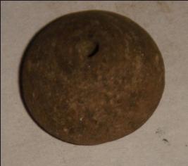 | Description / विवरण | Perforated, terracotta bead, betel nut in shape having concentric lines at base. |