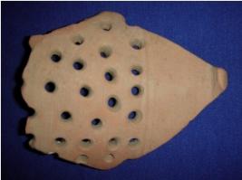 | Description / विवरण | Potsherd, probably the neck part of a pot having 21 holes in four rows. |