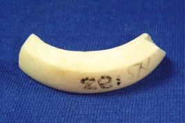 | Description / विवरण | Small fragment of plain, ivory bangle. One side is thicker than the other and the edge is slightly sloping outwards. |