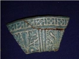 | Description / विवरण | Potsherd of Gupta period having some embossed floral designs in silver and green colour on obverse side and reverse side is plain and of creamish white colour. |