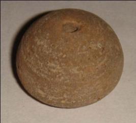 | Description / विवरण | Perforated terracotta bead, betel nut in shape having striation marks on the body. |