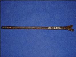 | Description / विवरण | Copper hair pin with a trident like design at the top which is partially broken, the other end is blunt. |