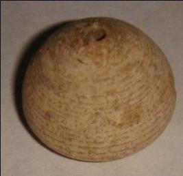 | Description / विवरण | Perforated terracotta bead, betel nut in shape, having striation marks on body. |