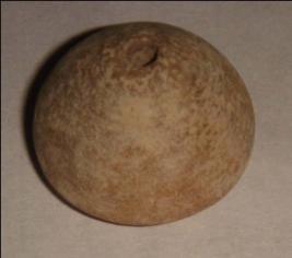 | Description / विवरण | Perforated terracotta bead, betel nut in shape. |