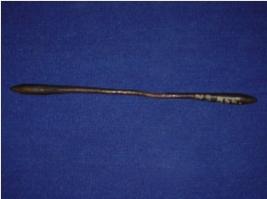 | Description / विवरण | copper hair pin used as hair ornament to tie hair thin at center, thick at both ends. |