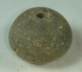 | Description / विवरण | Perforated terracotta bead, betel nut body with slight depression at the base. |