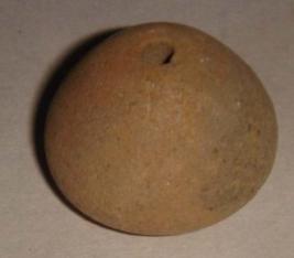 | Description / विवरण | Perforated terracotta bead, betel nut in shape. |