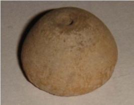 | Description / विवरण | Perforated terracotta bead, betel nut in shape slightly peeled off from base. |