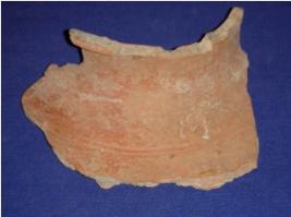 | Description / विवरण | Potsherd, neck part of a pitcher, having incised circular and floral design. |