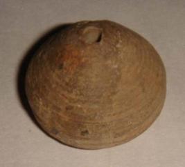 | Description / विवरण | Perforated terracotta bead, betel nut in shape the body is having concentric circles. |