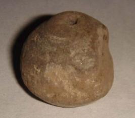 | Description / विवरण | Perforated terracotta bead, betel nut in shape. The body is half broken. |