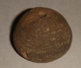 | Description / विवरण | Perforated terracotta bead, betel nut in shape, slight flaking at the top. |