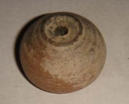 | Description / विवरण | Perforated terracotta bead, betel nut in shape, slight depression on top and bottom. |