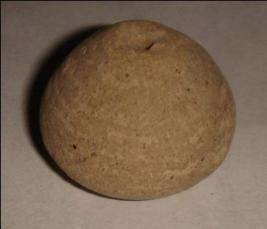 | Description / विवरण | Plain, perforated terracotta bead, pot-shaped body with mild striation marks on it. |