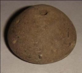 | Description / विवरण | Plain, perforated terracotta bead, betel nut in shape, mild depression at the base. |