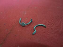 | Description / विवरण | Two badly damaged pieces of a nose ring silverish in colour and a small flat circular base. |