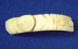 | Description / विवरण | Fragment of slightly broad, ivory bangle with carvings. The design consists of a large circle near one end, two small circles at the other end and decorative patterns between them. |