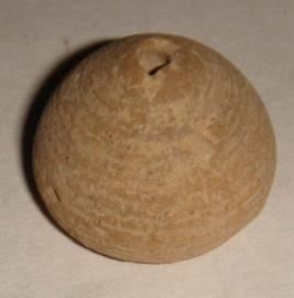 | Description / विवरण | Perforated terracotta bead, betel nut in shape. |