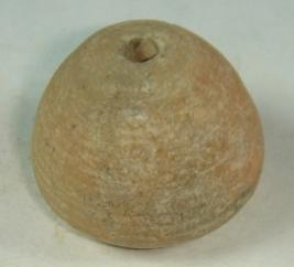 | Description / विवरण | Perforated terracotta bead, betel nut in shape the base is having slight depression. |