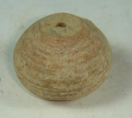 | Description / विवरण | Perforated terracotta bead betel nut in shape, slight flaking at the top and the body is having concentric circles. |