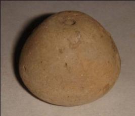 | Description / विवरण | Plain, perforated terracotta bead with pot shaped body, clay incrustation is seen on the body. |