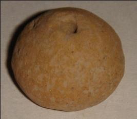 | Description / विवरण | Plain, perforated terracotta bead, betel nut in shape, it is slightly peel off. |