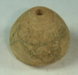 | Description / विवरण | Perforated terracotta bead, betel nut in shape and striation marks on the body. |