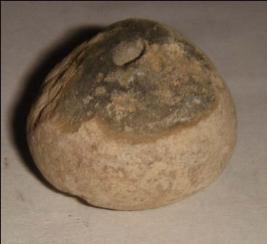 | Description / विवरण | Plain perforated terracotta bead, pot-shaped body, flaked off at the tip. |