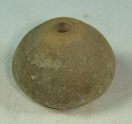 | Description / विवरण | Perforated terracotta bead. betel nut in shape, the base is flaked off. |