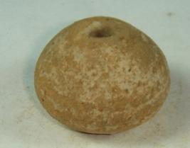 | Description / विवरण | Perforated terracotta bead, betel nut in shape, the body part is rubbed off. |
